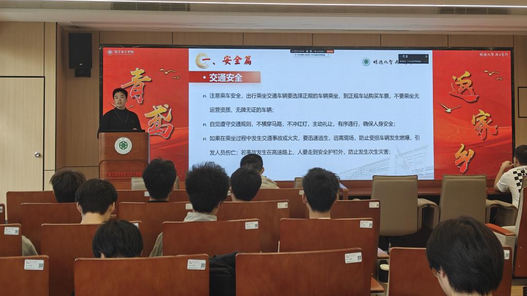 在工学四号馆204报告厅组织开展安全培训会。张昊昀结合实例,系统讲解了交通、人身、财产、饮食及网络等方面的安全注意事项,并就新闻宣传、影像采集等工作规范作了提醒,为实践活动的顺利开展筑牢安全基础。