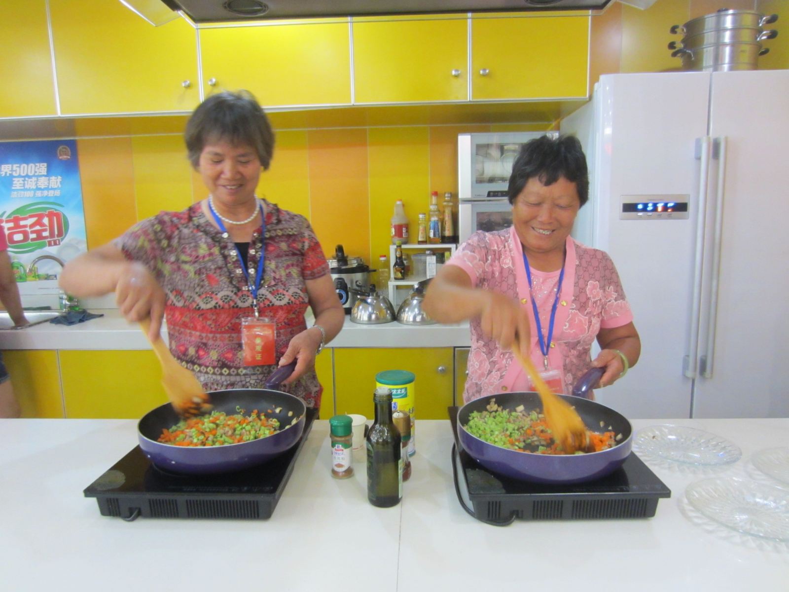 下午,我们在粮油公司里面举行了厨艺大赛,长者们互相交流厨艺的心得体会,使得长者能够结识了不同街道的老人,增进了大家的友谊。而长者们也把制作出来的美食分享给各位小朋友。其乐融融的气氛充斥着整个会场。