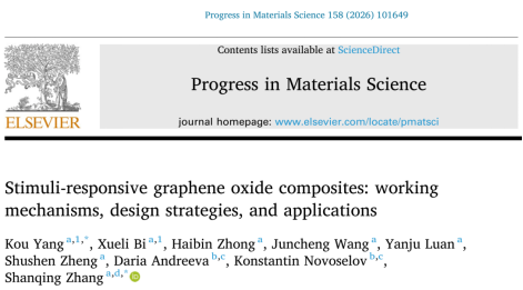 近日,我校诺奖得主联合实验室在智能二维材料领域取得新进展,相关综述论文“Stimuli-responsive graphene oxide composites: working mechanisms, design strategies, and applications”正式发表于国际材料科学领域的顶级权威综述期刊《Progress in Materials Science》(影响因子44.8,中科院一区TOP)。该成果由我校张山青教授、杨蔻副教授和新加坡国立大学康斯坦丁院士合作共同完成,快猫