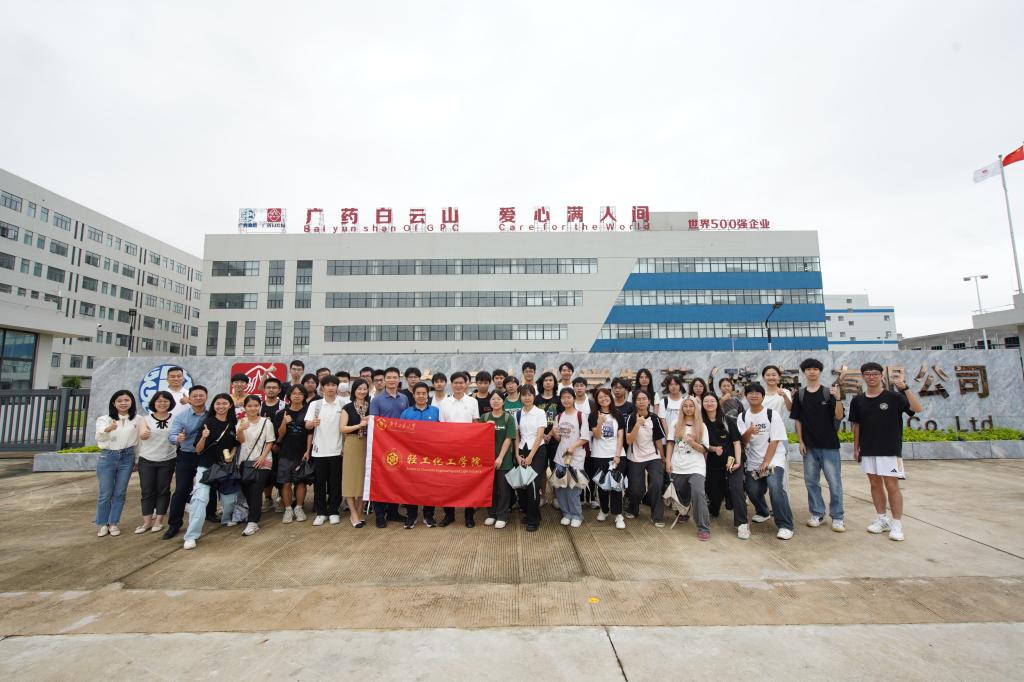 师生前往企业生产基地参观调研,深入了解产线精细化管道结构以及反应釜的工作原理,参观学习蒸馏塔与绿色溶剂回收模式,对生产线运营模式有了更深刻的认识。