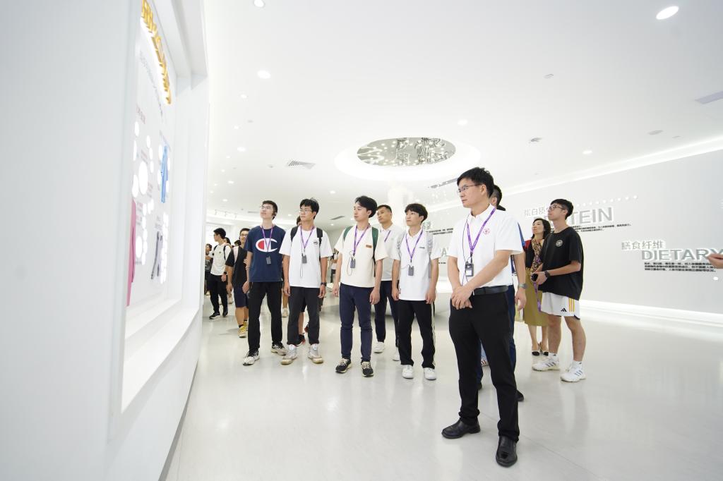 在汤臣倍健股份有限公司透明工厂,解说员和校友代表带领快猫